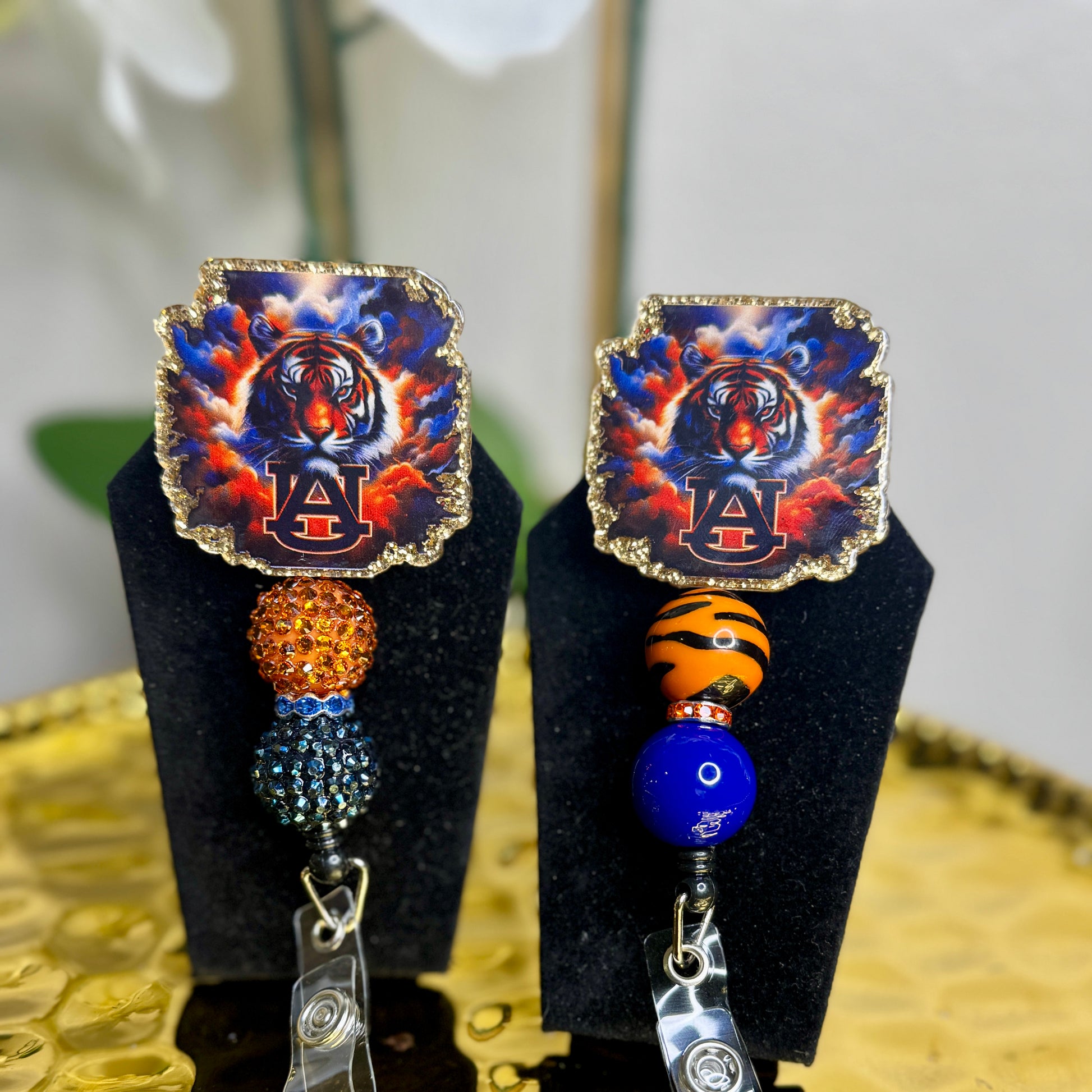 Auburn Tiger retractable badge reel! Please note, bead patterns vary!
